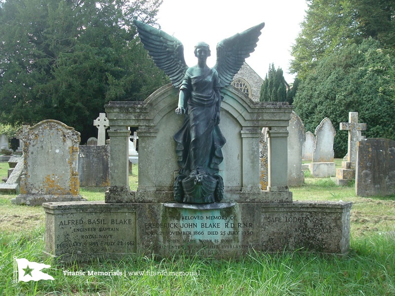 The grave of Frederick John Blake is modelled on the Titanic Engineers memorial in Southampton's East Park. That memorial, unveiled on 22 April 1914 just over two years after the sinking of the Titanic, is dedicated to the memory of the Titanic's thirty-five strong engineering staff, who died in the sinking. Frederick Blake, as the White Star Line's Engineering Superintendent at Southampton, would have selected many of these engineers; they will have been men he knew personally.