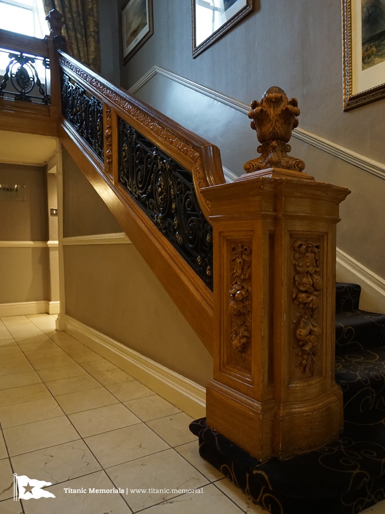 The hotel not only contains much of the first-class lounge, but other fittings from the ship. The revolving door at the entrance to the hotel came from the Olympic as did the staircase which can be seen on entering the hotel. This originally formed part of the aft grand staircase.