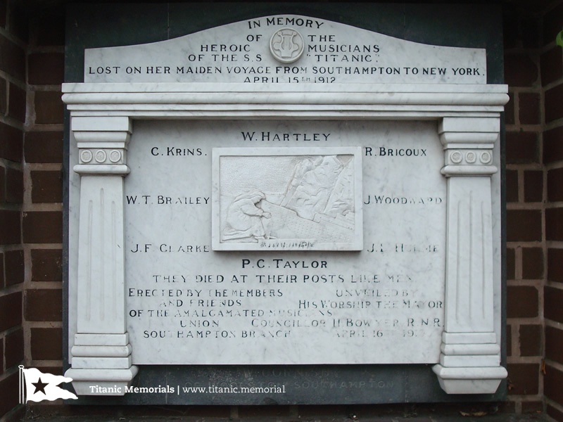 From her heroic engineers who maintained power for the ship's generators to keep the lights on, to her brave postal clerks who struggled to move bags of mail to higher decks, there emerged many stories of individual and collective heroism and bravery amongst the Titanic's passengers and crew. In the days following the sinking one of the most telling stories of heroism recounted was that of her musicians and the musicians tablet in Southampton is one of many memorials to the musicians.